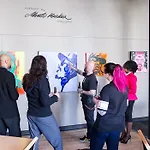 For moments of leisure, the hotel's cozy lounge, complete with a fireplace, invites guests to unwind or host small meetings in a tranquil atmosphere. The hotel's stylish decor, featuring bright-red rugs and trendy furniture, including zebra-striped armchairs, provides the perfect backdrop for relaxation or casual gatherings.